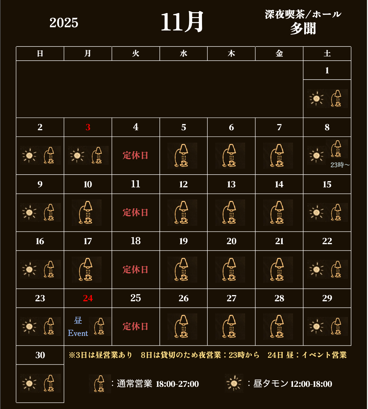 11/24:昼営業あります(イベントも開催中)