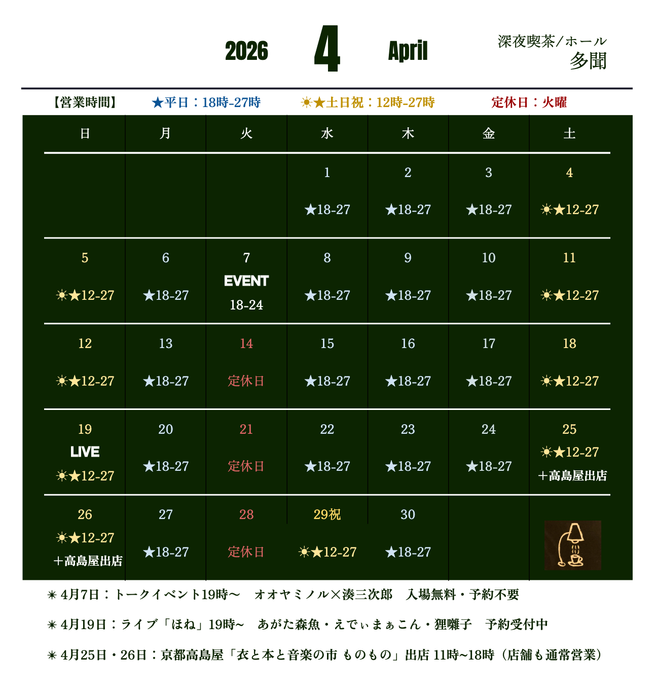 ✴︎ 4月25日・26日:京都高島屋「衣と本と音楽の市 ものもの」